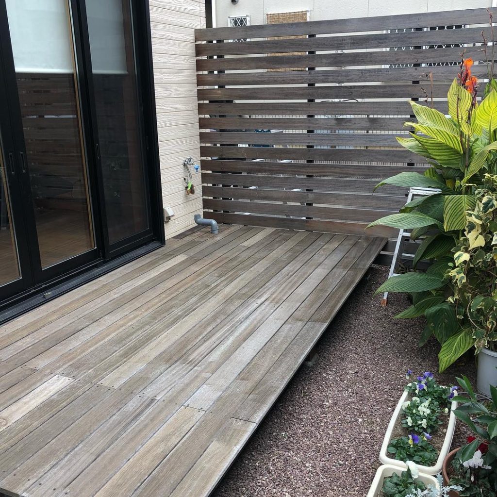 今日は仕事で美容室のウッドデッキの塗装だす!